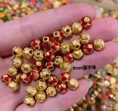 Cuentas de deseos de oro puro de 24 quilates, cuentas sueltas de oro duro 3d, accesorios de joyería de oro para cordón de mano
