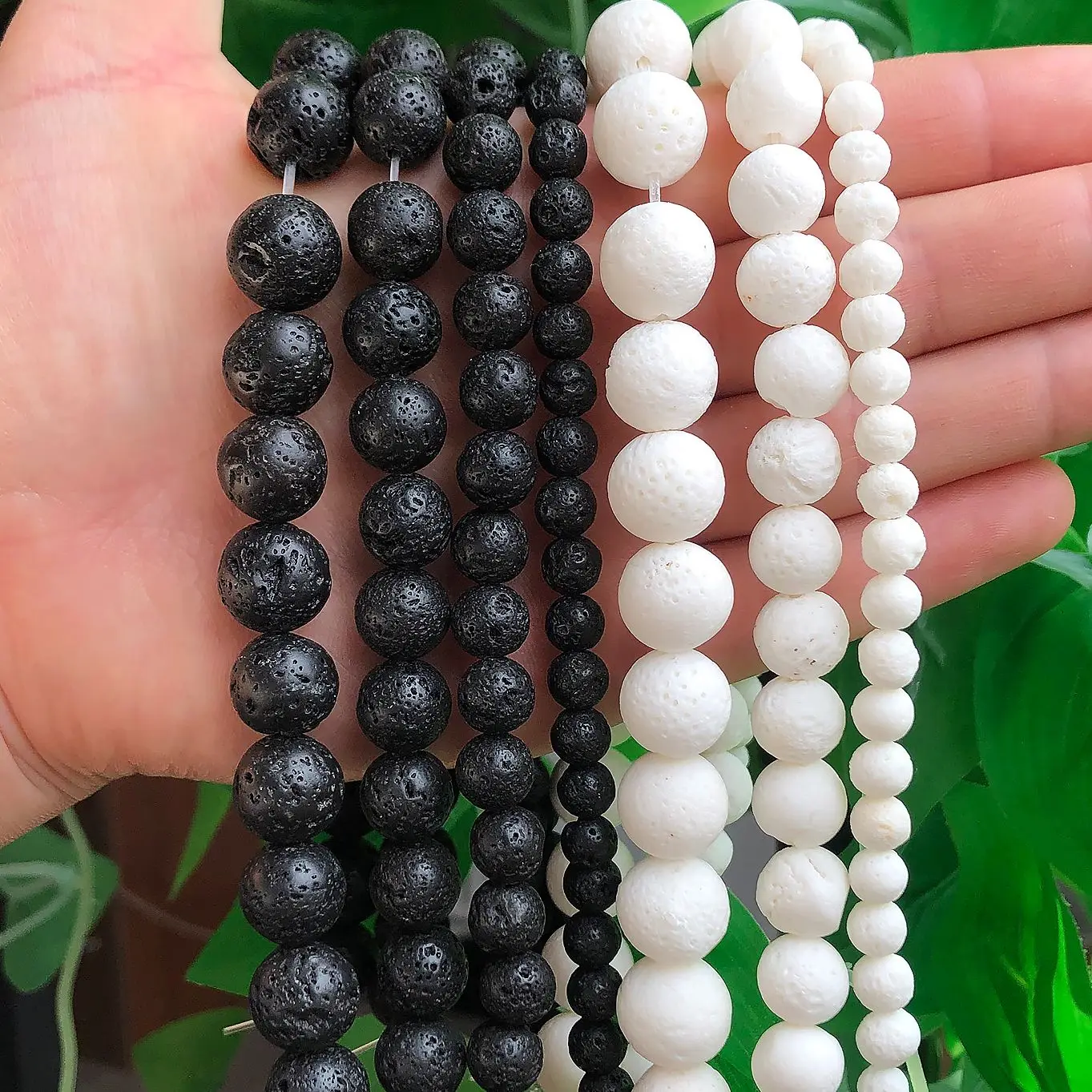 Cuentas de piedra de Lava volcánica negra Natural, esponja blanca, ágatas de Coral, espaciador redondo, cuentas sueltas para la fabricación de joyas, pulsera Diy, 4-12mm