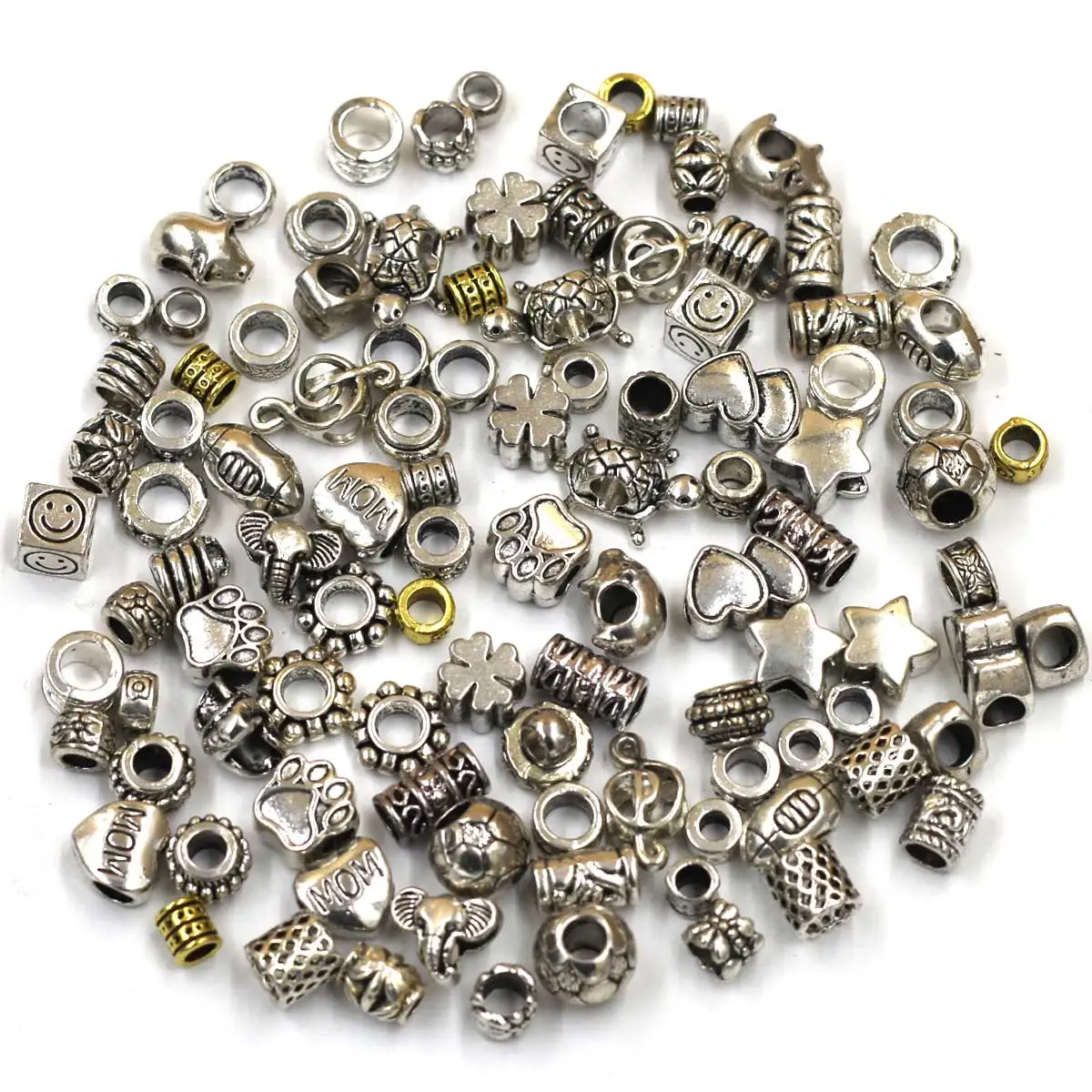 Cuentas europeas espaciadoras con agujero grande y estrella de corazón redondo mezclado para pulseras de dijes europeos, joyería DIY, accesorios hechos a mano