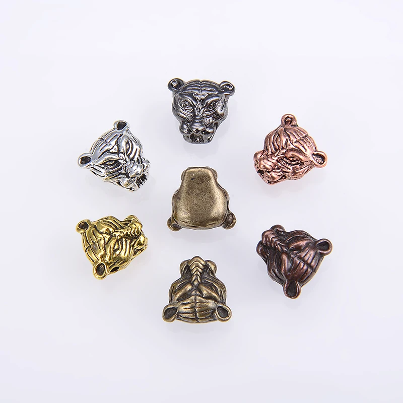 Cuentas perforadas de cabeza de tigre retro, material de aleación de Zinc, 6 colores, puede hacer pulseras, joyería DIY