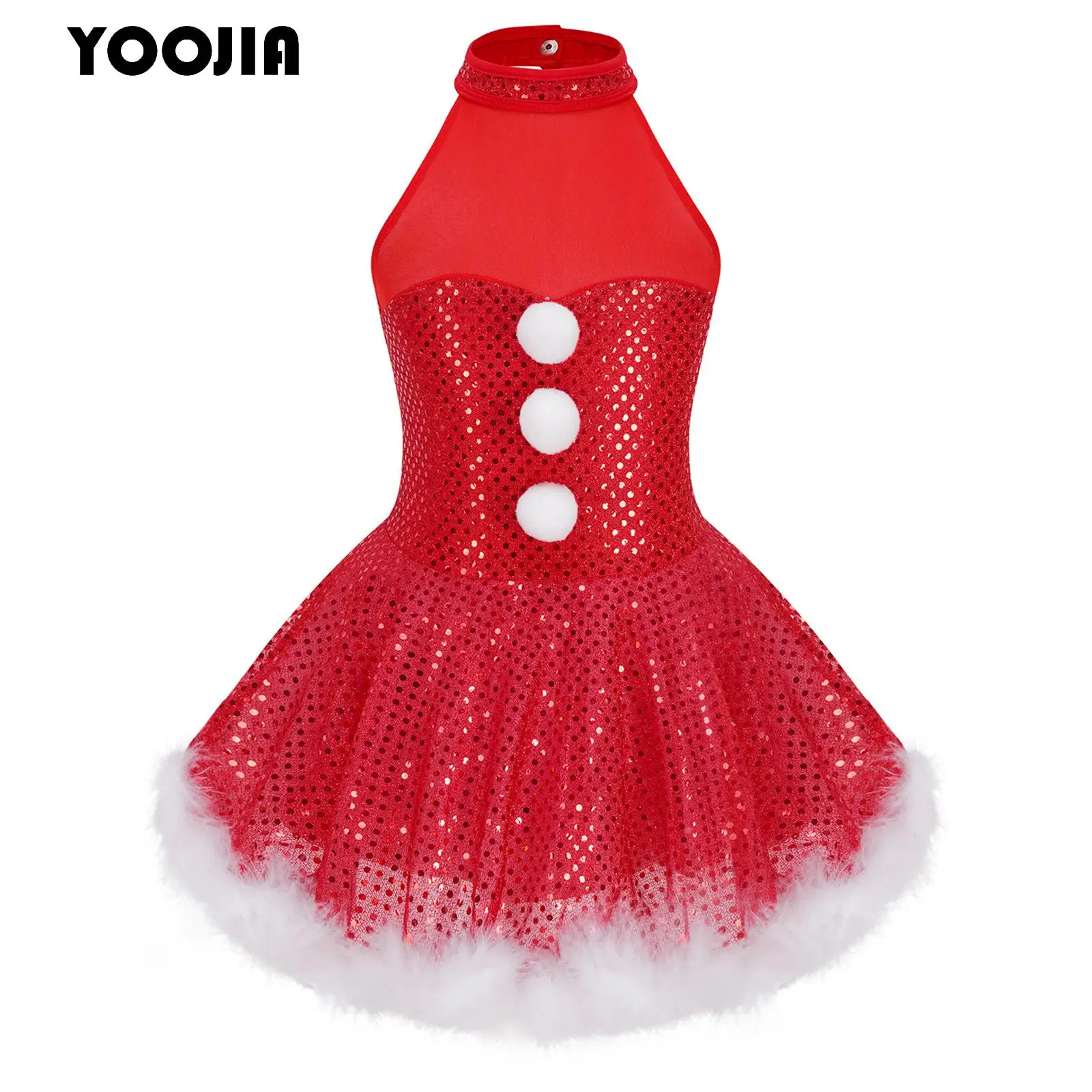 Disfraz navideño de Papá Noel y muñeco de nieve para niñas, vestido tutú con cuello Halter y lentejuelas brillantes, leotardo de baile de Ballet, patinaje sobre hielo, vestido giratorio