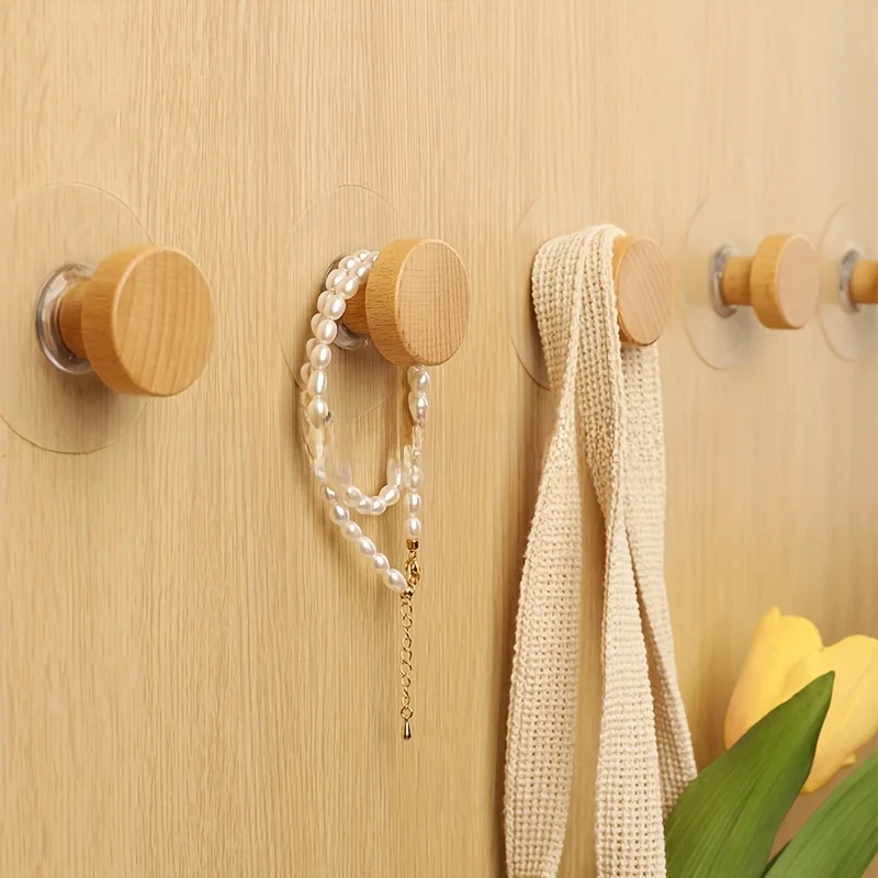 Dos ganchos de pared adhesivos de madera, ganchos de pared con formas geométricas, para colgar ropa de dormitorio, sombreros, bufandas, toallas, autoadhesivo creativo