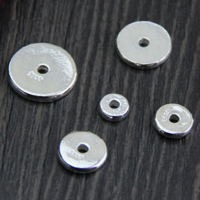 ESPACIADOR redondo plano de plata esterlina 100% 925, apto para collar de pulseras de 6mm, 8mm, 10mm, 12mm y 14mm, cuentas de dijes para fabricación de joyas DIY