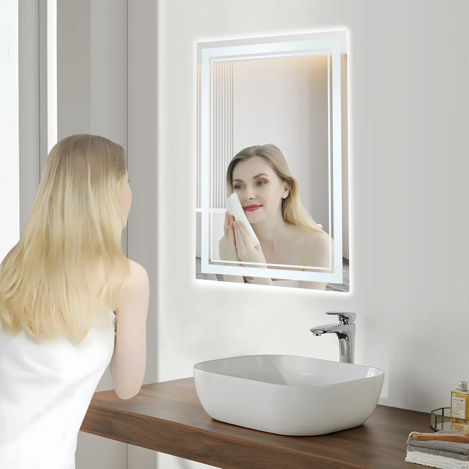 Espejo de baño montado en la pared con atenuación infinita tricolor LED, interruptor táctil, doble uso horizontal y vertical, utilizado para baños