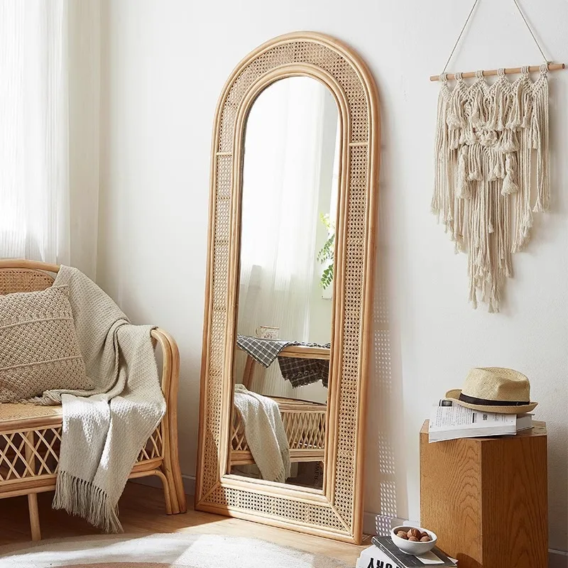 Espejo de cuerpo completo guardarropa simple espejo apropiado para el suelo dormitorio de niñas ratán