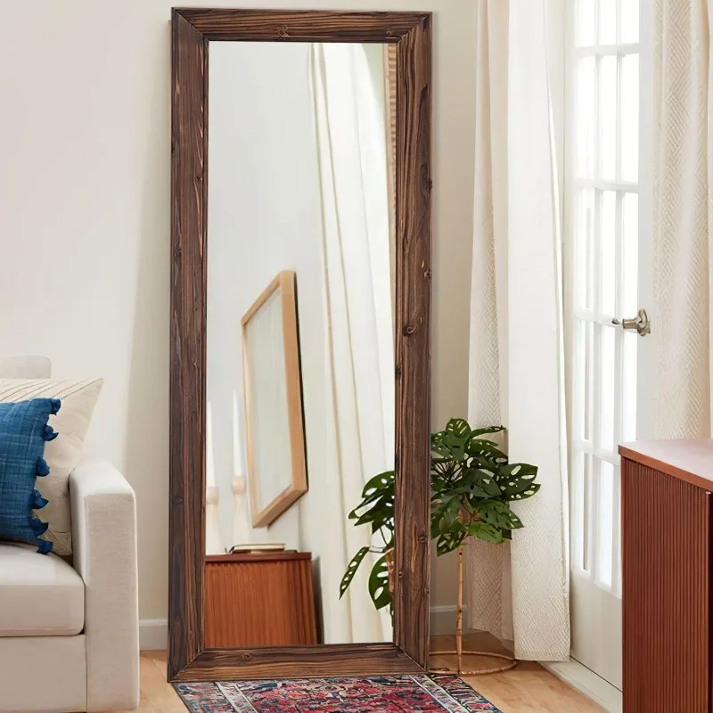 Espejo de longitud completa, marco de madera maciza, suelo de espejo con soporte de pie, vestidor de pared colgante Vertical y Horizontal