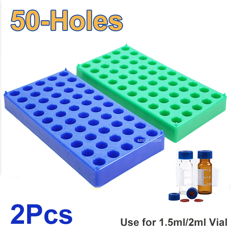 Estante de plástico para viales, 50 soportes adecuados para viales de 12mm, 1,5/2ml, estantes para tubos de centrífuga, almacenamiento de péptidos, suministro de laboratorio apilable, 2 unids/pack