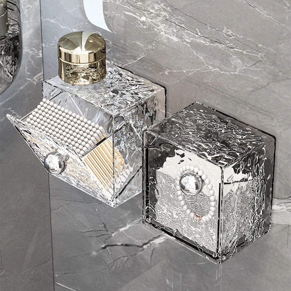 Estante montado en la pared no perforado para baño, almacenamiento de algodón para maquillaje, caja de lápiz labial con hisopo de algodón, tocador de baño, administrador