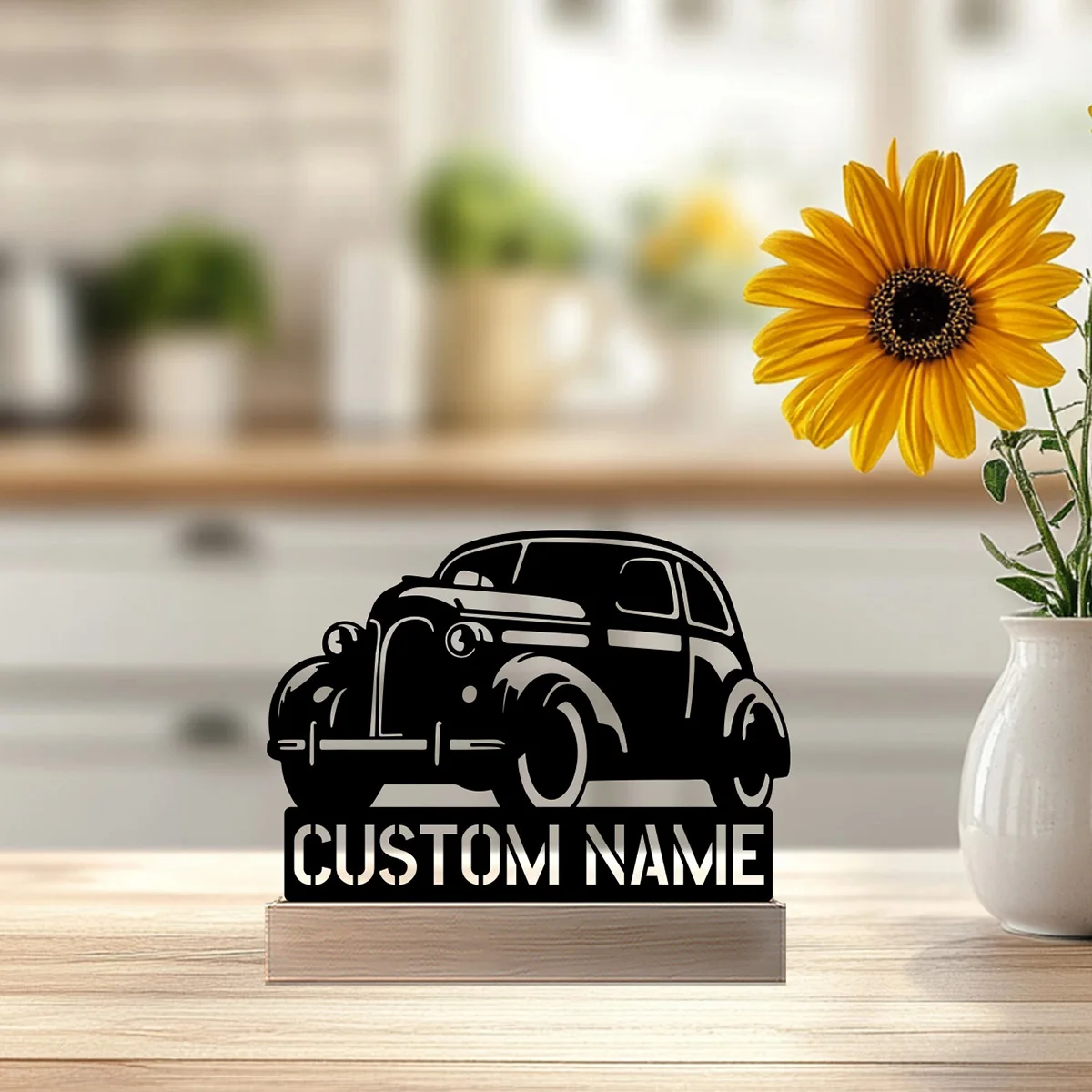 Estatua de Metal con nombre personalizado de sedán Simple, estatua de Metal con Base de madera, adorno de hierro, escultura de estaño, artesanía con Base de madera, 1 ud.