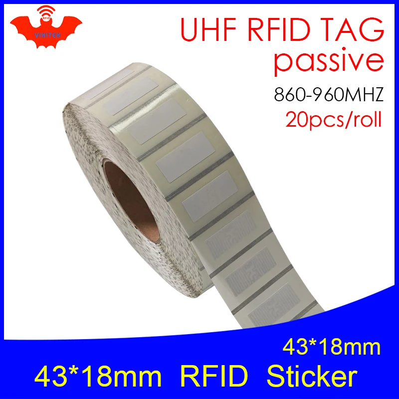 Etiqueta Adhesiva RFID UHF NXP U8, etiqueta de cobre imprimible de 43x18mm, 915mhz, 868mhz, EPC, 6C, 20 piezas, envío gratis