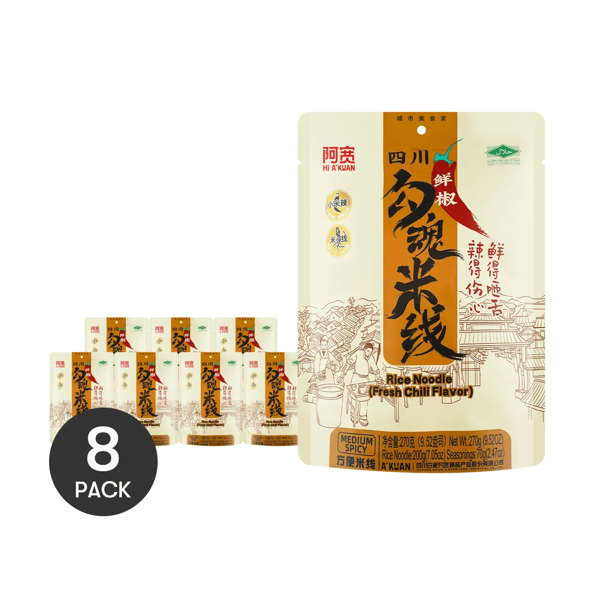 Fideos de arroz estilo Sichuan BAIJIA, 9,52 oz * 8 paquetes, 8 paquetes