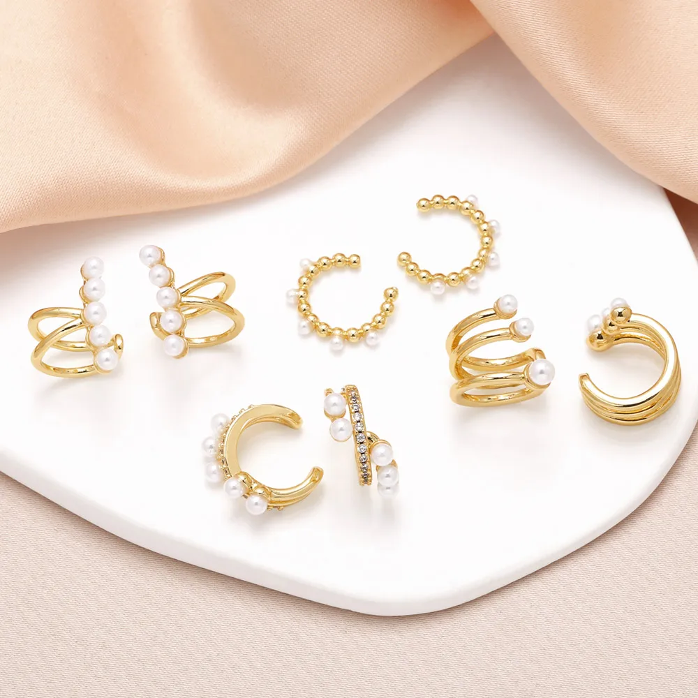 FLOLA-pendientes de Clip en forma de C chapados en oro pulido para mujer, Clips de oreja de perlas blancas, pequeños regalos de joyería ersa374