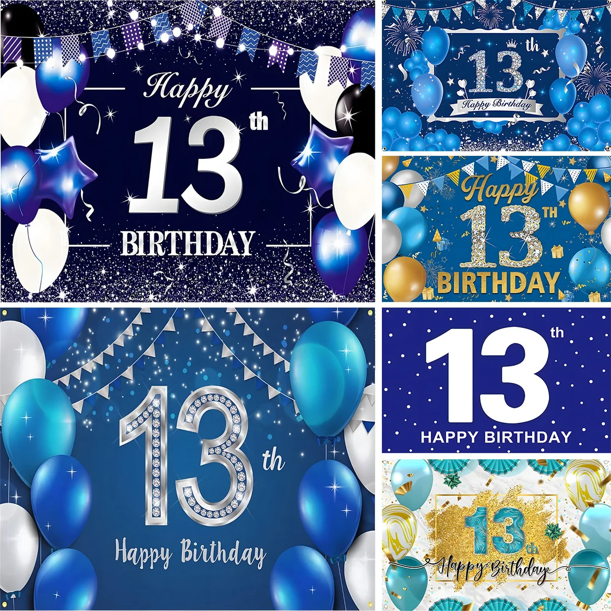 Fondo de fiesta de feliz 13 cumpleaños, cartel de 13 años para niñas y niños, globo dorado negro, fondo oficial para adolescentes