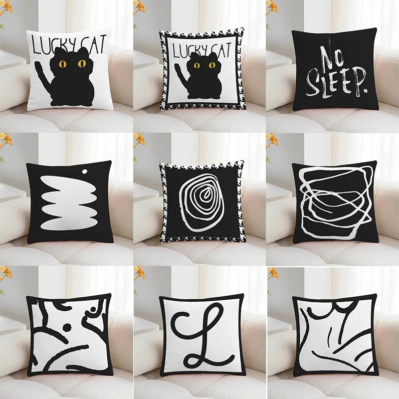 Funda de almohada decorativa con estampado Simple en blanco y negro, funda de almohada cuadrada para dormitorio y sala de estar
