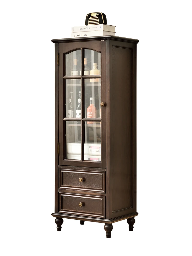 Gabinete de vino de madera maciza, puerta de cristal, mueble lateral de comedor junto al mueble de TV retro rectangular en la sala de estar, almacenamiento de madera maciza wi