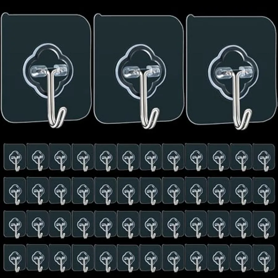 Ganchos de pared adhesivos para colgar, paquete de 50 ganchos autoadhesivos de acero inoxidable resistentes, impermeables y a prueba de herrumbre, Uti autoadhesivo transparente