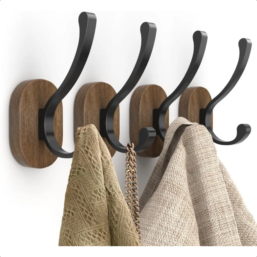 Ganchos de pared para colgar abrigos, paquete de 4 ganchos para abrigos, ganchos para abrigos de madera montados en la pared, ganchos de Metal individuales para colgar sombreros, llaves T