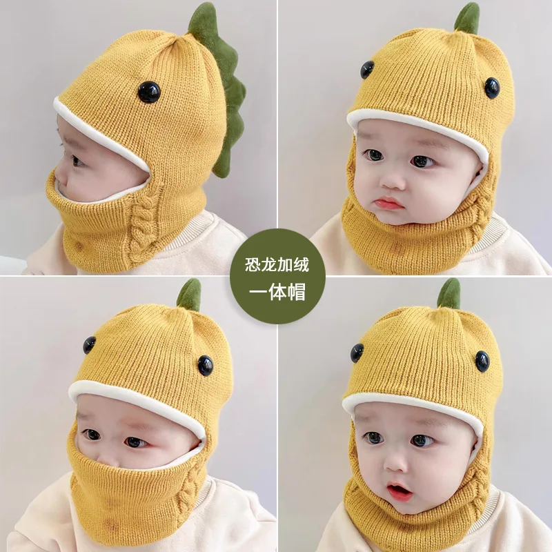 Gorro con orejeras de dinosaurio 3D para niños, gorros de lana de dibujos animados, gorros de punto para niños de 2 a 6 años, invierno, cálido