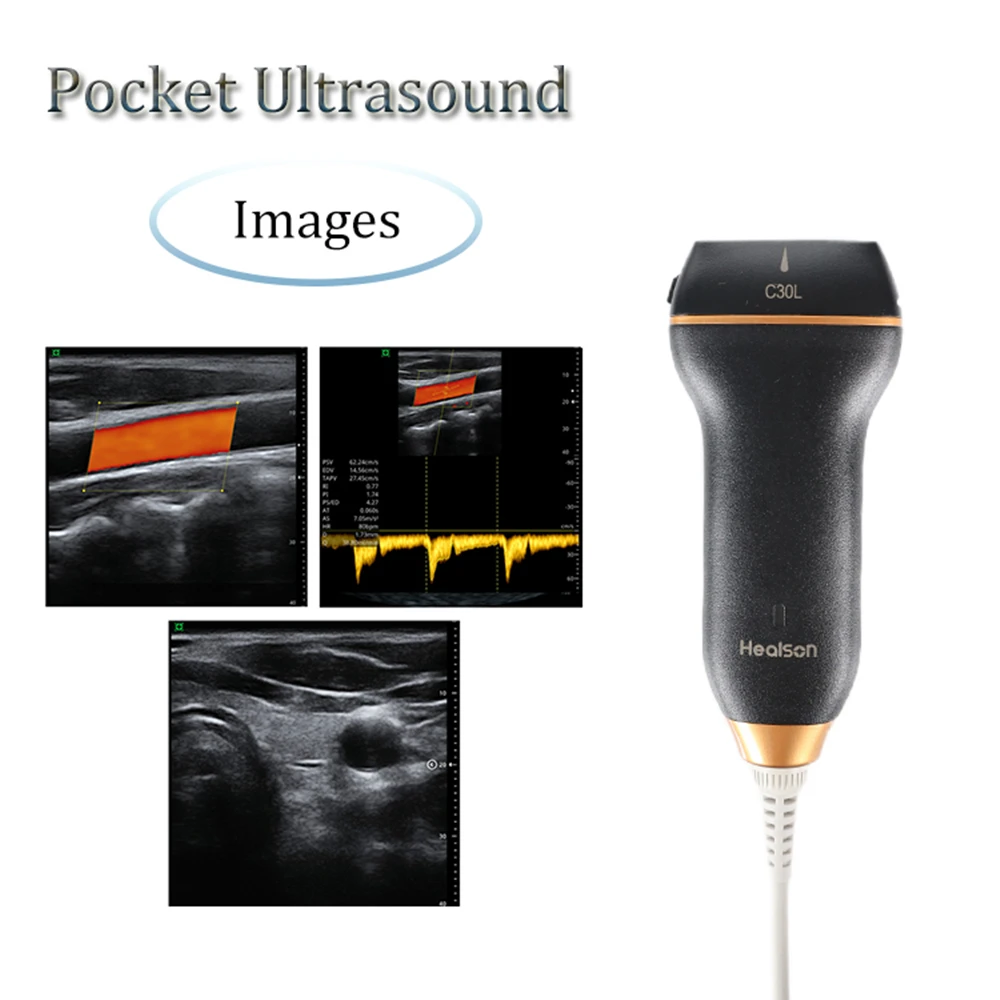 Healson C30L Ultrasonido portátil Doppler color USG lineal de bolsillo para senos, MSK, pulmón, superficial, vascular, tiroides
