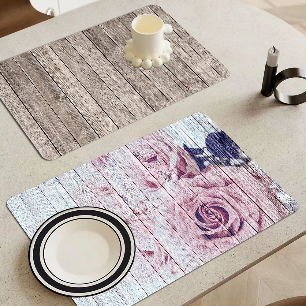 Hermosa estera de drenaje de cocina de madera, almohadillas de secado de platos de estilo Retro, manteles individuales absorbentes, escurridor, vajilla, accesorios