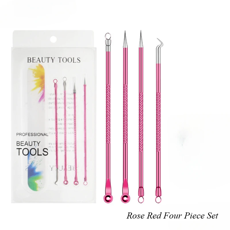 Herramientas de eliminación de espinillas y espinillas, 4 piezas, herramientas multifuncionales de limpieza de poros para el cuidado de la belleza de la piel Facial