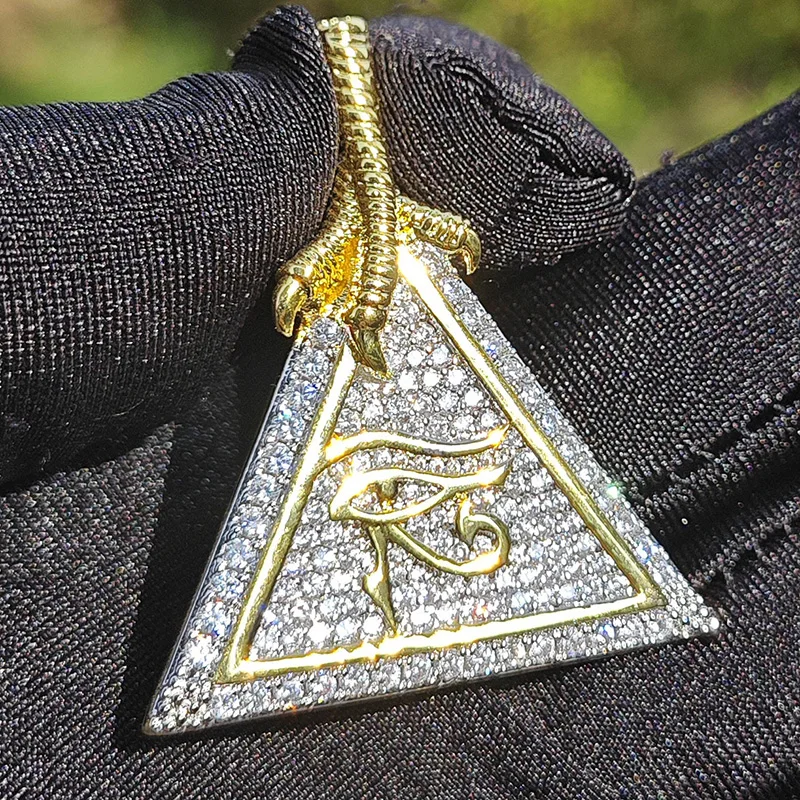 Hip Hop 3A + CZ piedra pavimentada Bling helado el ojo de Horus en pirámide colgante collar para hombres rapero joyería Color oro plata