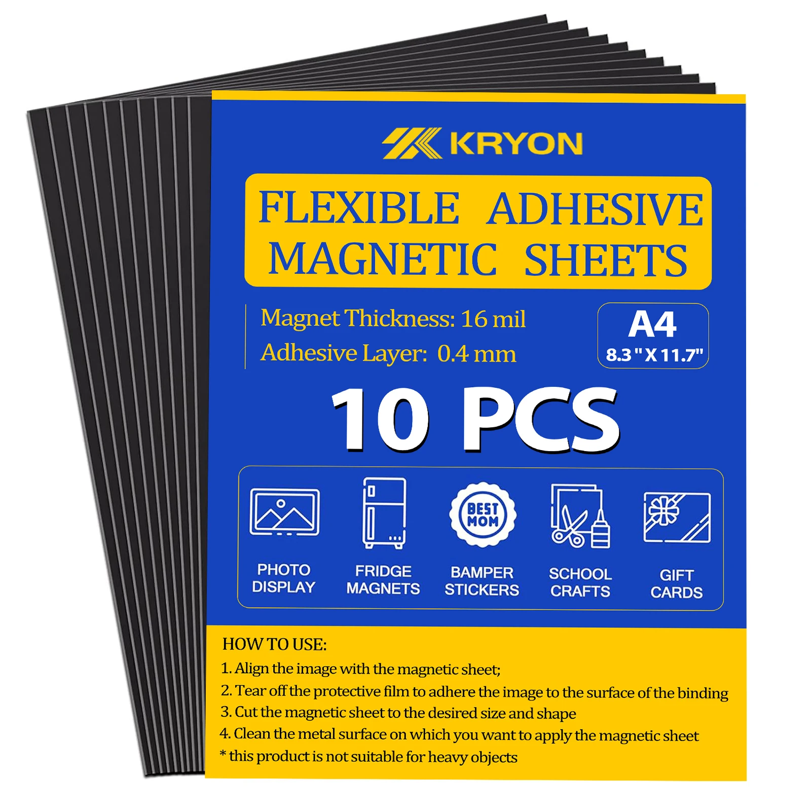 Hojas magnéticas A4 con respaldo adhesivo, paquete de 10 tamaños de imagen de 8,3 «x 11,7», imanes fotográficos para refrigerador, hoja magnética adhesiva