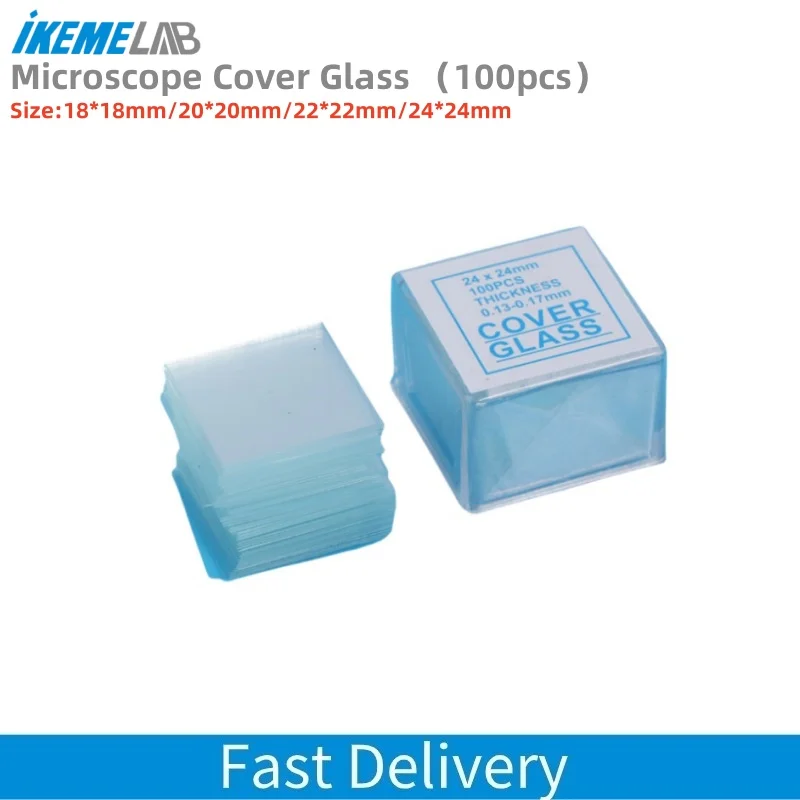 IKEME 100 Uds cubierta de microscopio cuadrada de vidrio 18×18 20×20 22×22 24x24mm de espesor 0,13-0,17mm para cubiertas de microscopio diapositivas de laboratorio
