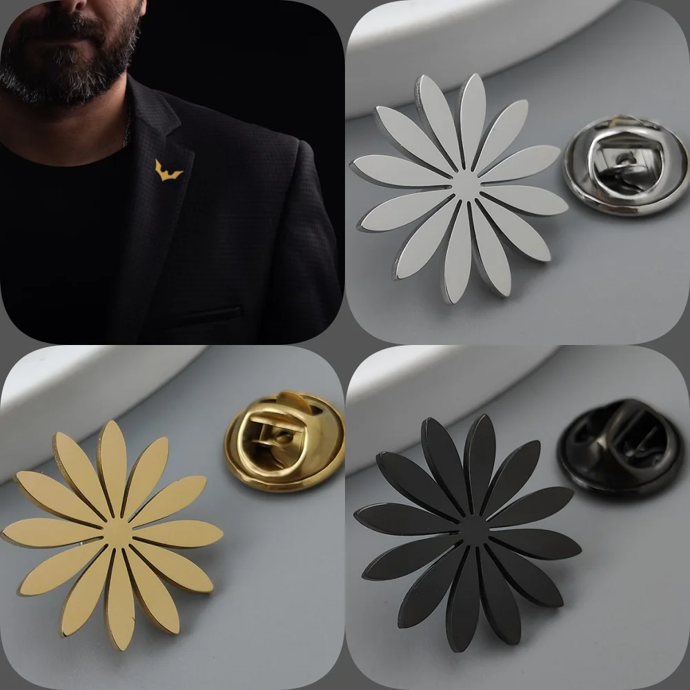 Insignia chapada en oro de Margarita de girasol, broche de cuello plateado, pin de solapa negro, conjunto de accesorios de traje de placa de identificación, regalo para hombres