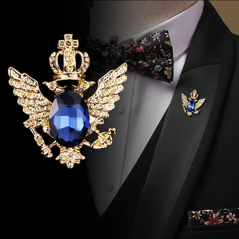 Insignia de doble águila con ala angular Vintage para hombre, traje Retro, abrigo, broche de diamantes de imitación, joyería, alfileres y broches de Metal de lujo para mujer
