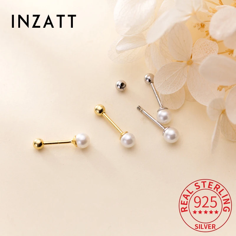 INZATT Plata de Ley 925 auténtica tornillo de cuentas de perlas de 3/4mm pendiente de tuerca de 18K para mujer joyería fina bonita accesorios minimalistas