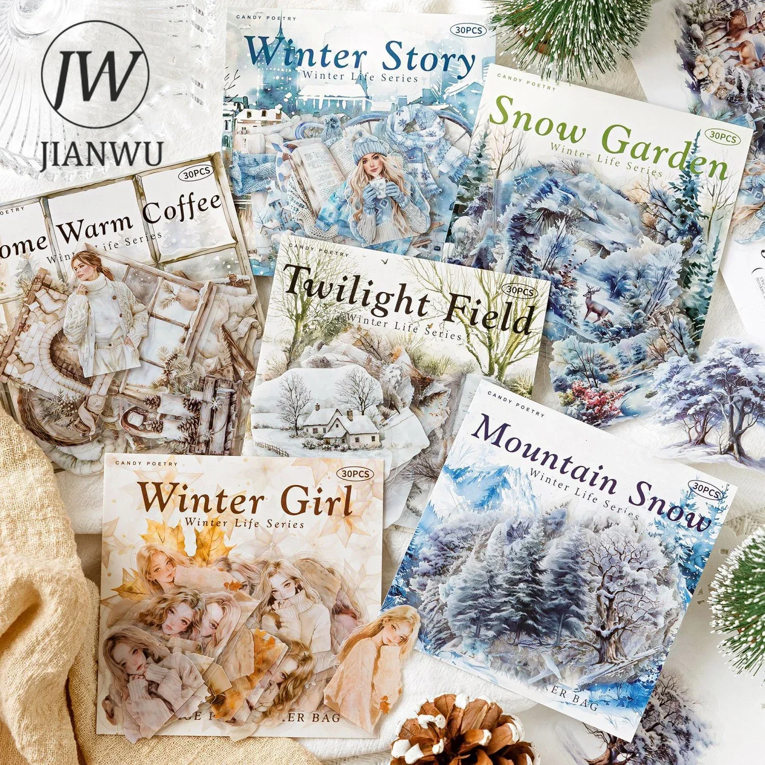 JIANWU Winter Life Series Vintage personaje árbol paisajismo Material Collag PET pegatina creativa DIY diario papelería