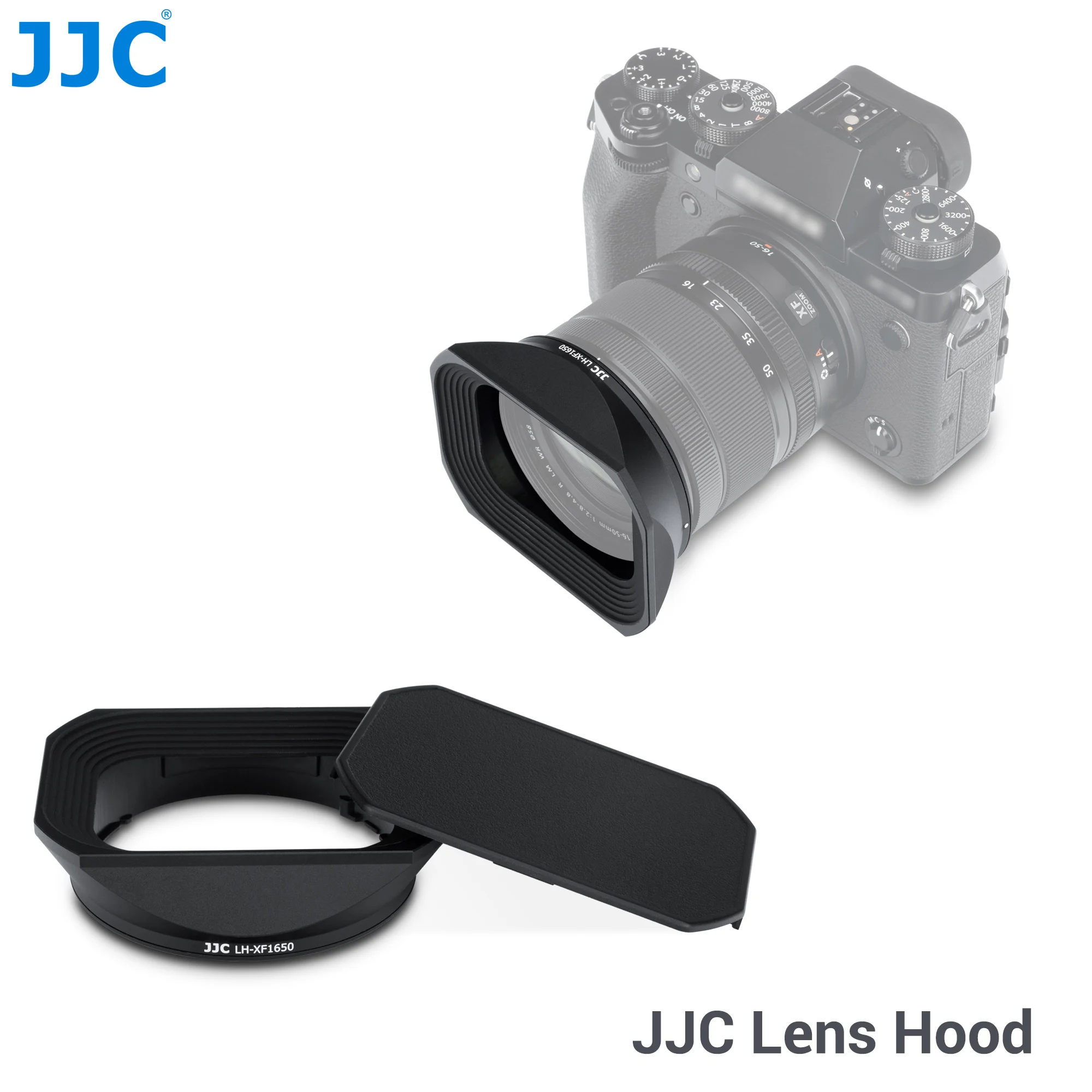 JJC Cubierta de parasol cuadrado de metal con tapa de parasol para Fujifilm Fuji XF 16-50 mm f/2.8-4.8 R LM WR en X-T50 XT50 X-T5 X-S20 X-T3