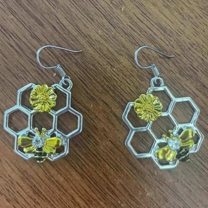 Juego de 2 pendientes y collar con colgante de abeja, girasol y panal, regalo de cumpleaños festivo para familia, amigo