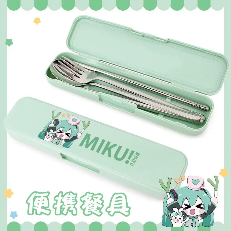 Juego de Cubiertos Portátiles de Acero Inoxidable con Diseño de Miku Hatsune Miku, Accesorios de Cosplay, Venta al Por Mayor