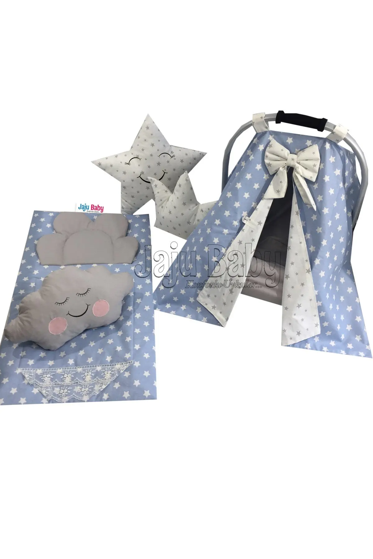 Juego de fundas para cochecito con patrón de estrellas, azul y blanco, hecho a mano