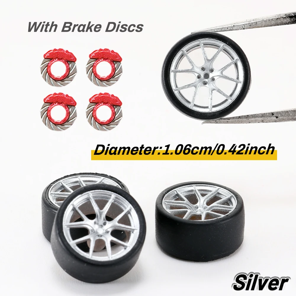 Kicarmod 1/64 modelo de coche fundido a presión ruedas de resina de impresión 3D con llantas de disco de freno de neumático de goma piezas de reacondicionamiento para Hot Wheels Tomica