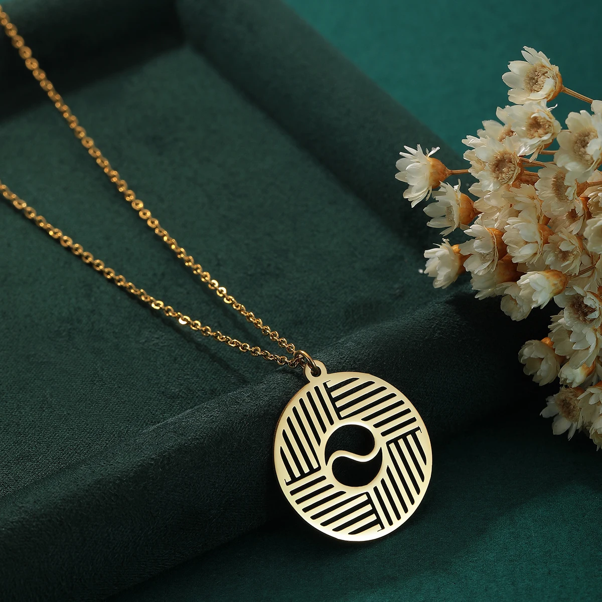 Kinitial-colgante de Mandala de Yin Yang para mujer, joyería espiritual, collar delicado de acero inoxidable