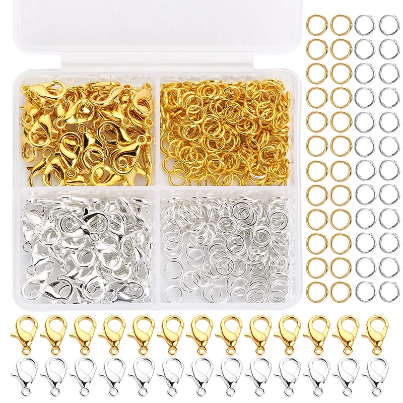 Kit de fabricación de joyas de 300 piezas, cierres de langosta duraderos y anillos de salto con caja de almacenamiento para cadena DIY, collar, pulsera, suministros conectados