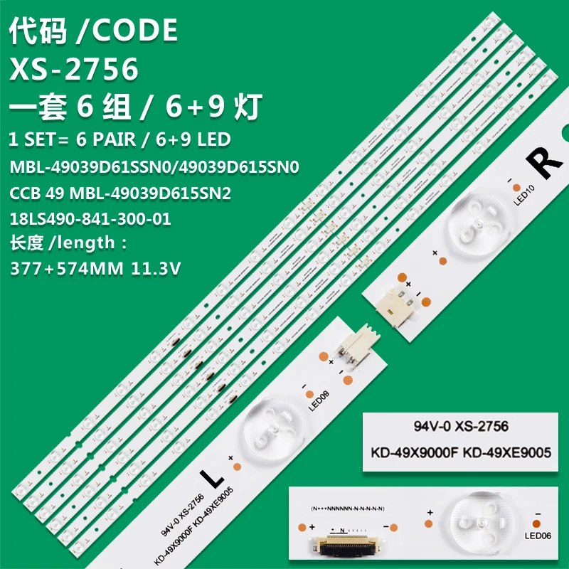 KIT12 retroiluminación LED para XBR-49X900F XBR-49X950H KD-49X900F KD-49XF9005 18LS49 1-984-208-11/12 15LED/CBB49 MBL-49039D615SN2