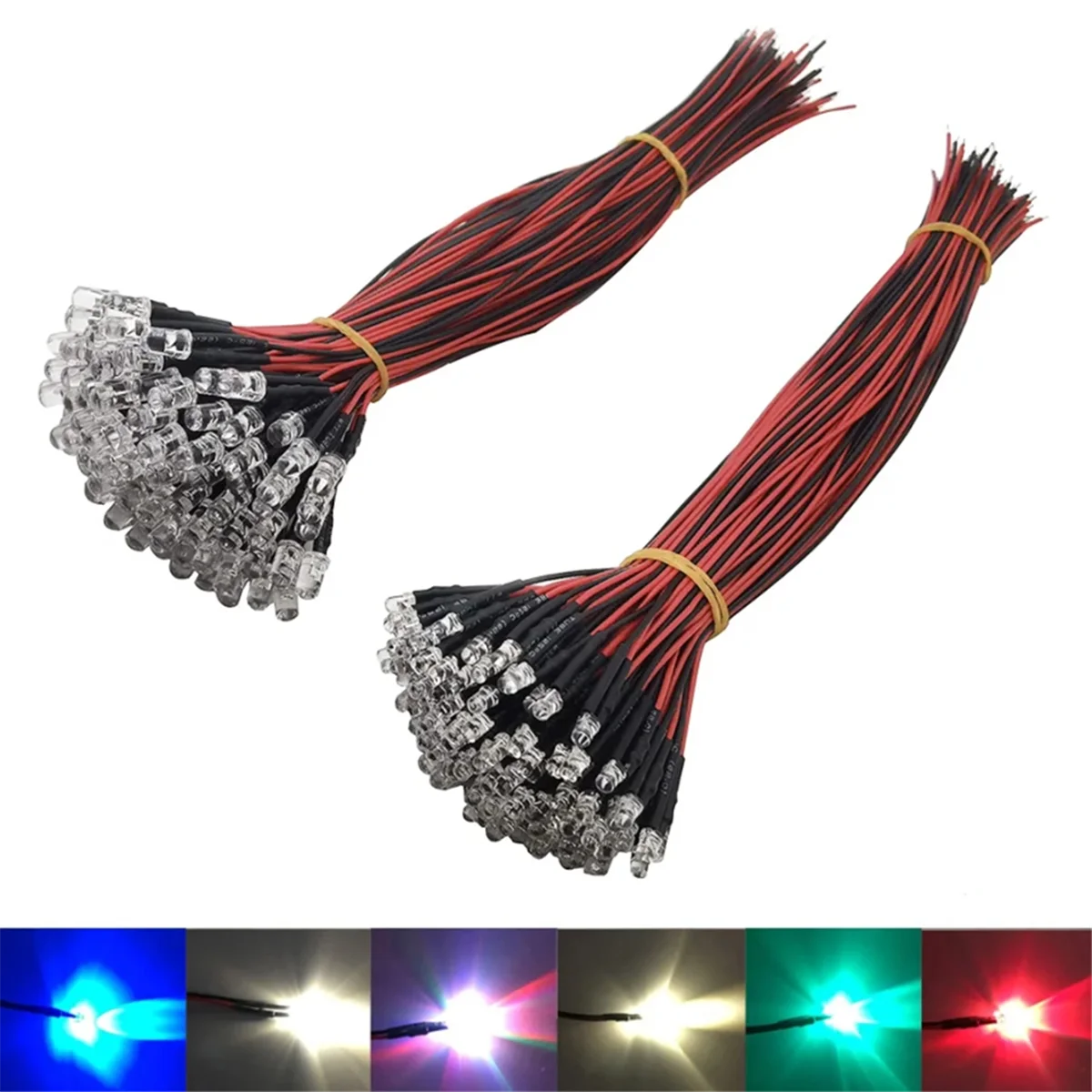 KZQ-f100pcs / lote 20cm precableado 5mm bombilla de luz LED diodos emisores precableados para decoración del hogar DIY DC3.7V-12V