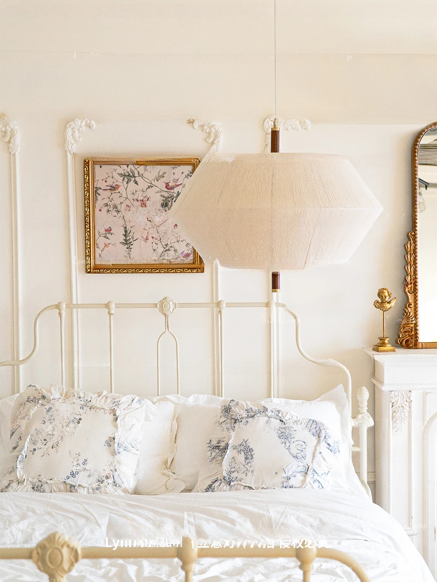Lámpara de araña de tela americana para dormitorio, estilo pastoral, tejido de madera maciza, sala de estar, lámparas francesas
