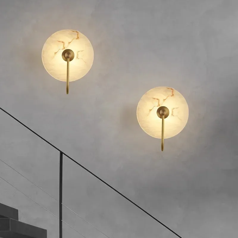 Lámpara de pared de piedra de nube natural de lujo, luz simple nórdica, hotel, famosa alojamiento, pasillo, porche, pared de fondo, dormitorio redondo