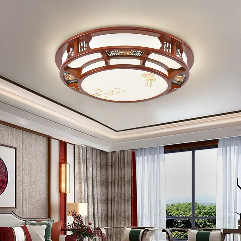Lámpara de techo de estilo chino para sala de estar, lámpara led rectangular para salón, lámpara de dormitorio de madera maciza antigua de estilo chino