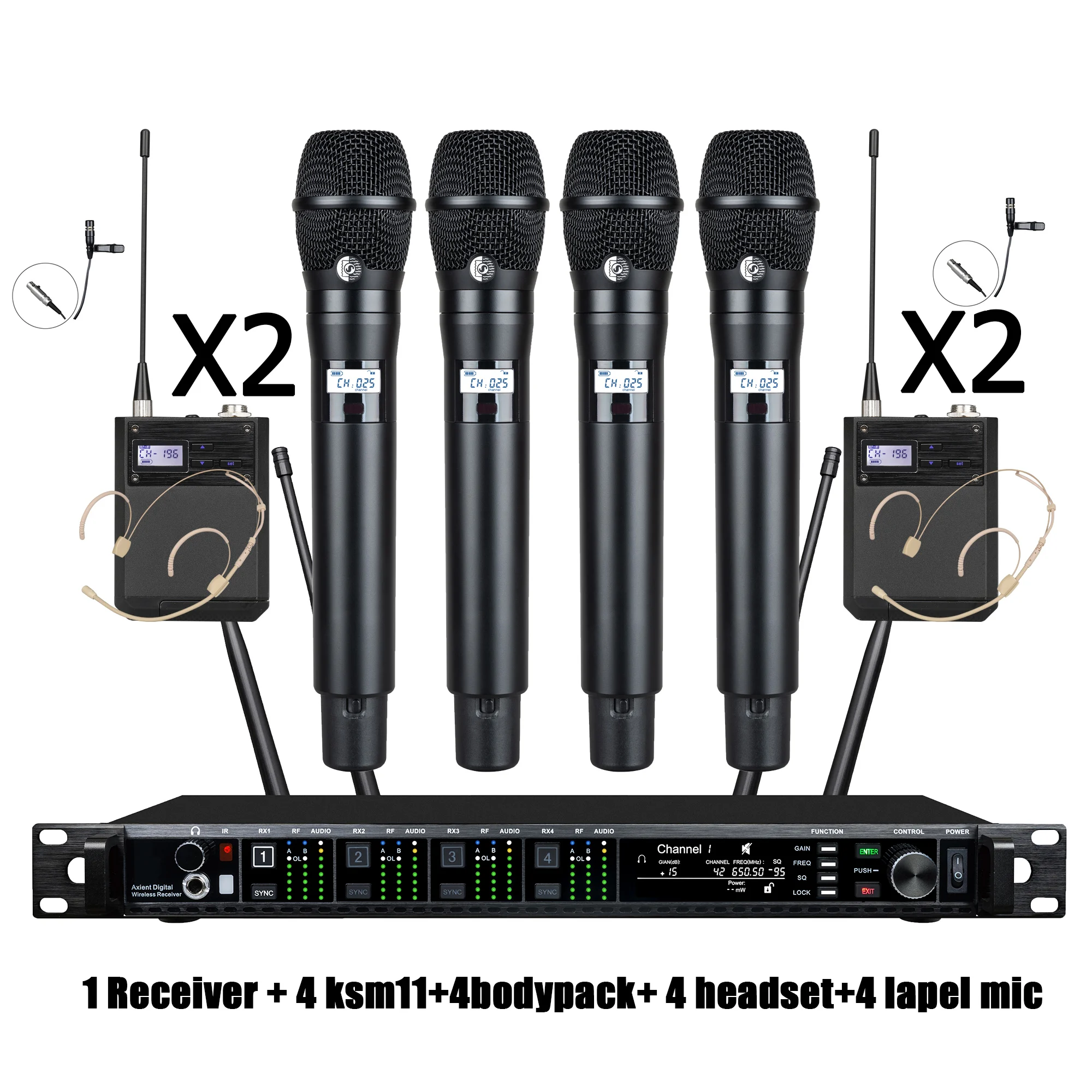 Leicozic 4 canales KSM11 KSM8 micrófono inalámbrico sistema de Radio profesional micrófono de cuello de cisne auriculares Lavalier Microfono etapa AD4Q