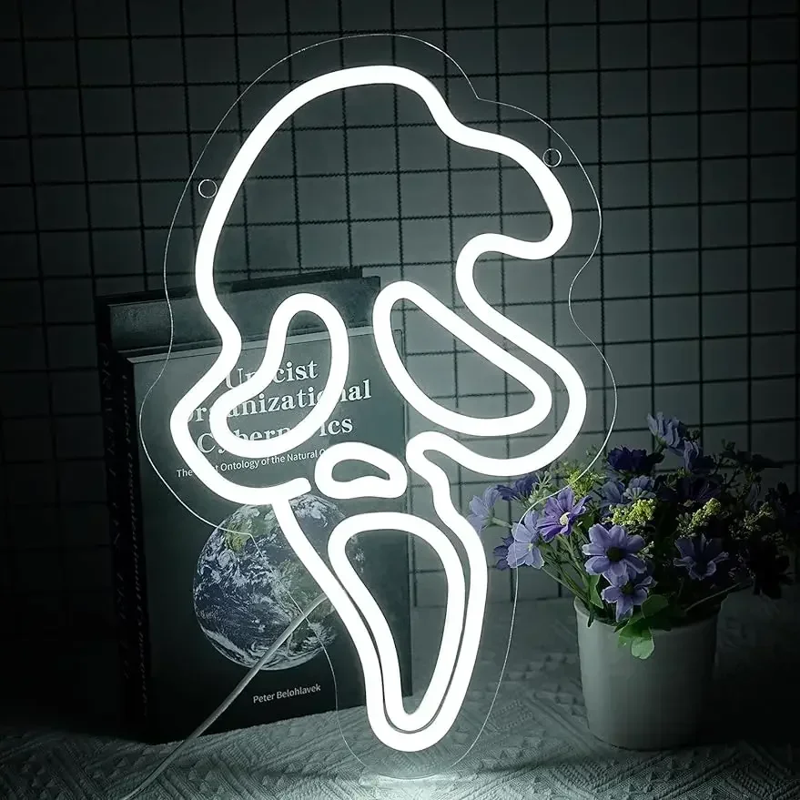 Letrero de neón de calavera LED, letrero de luz de neón regulable USB para sala de jugadores, dormitorio, Bar, sala de estar, regalo de fiesta de cumpleaños, decoración de pared de Halloween