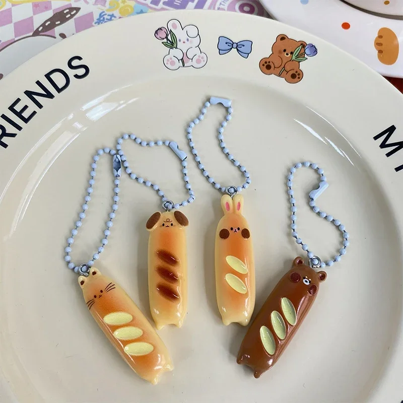 Lindo pan cachorro gato colgante bolsa colgante conejo perro resina creativo llavero pan francés oso llavero mochila decoración regalos