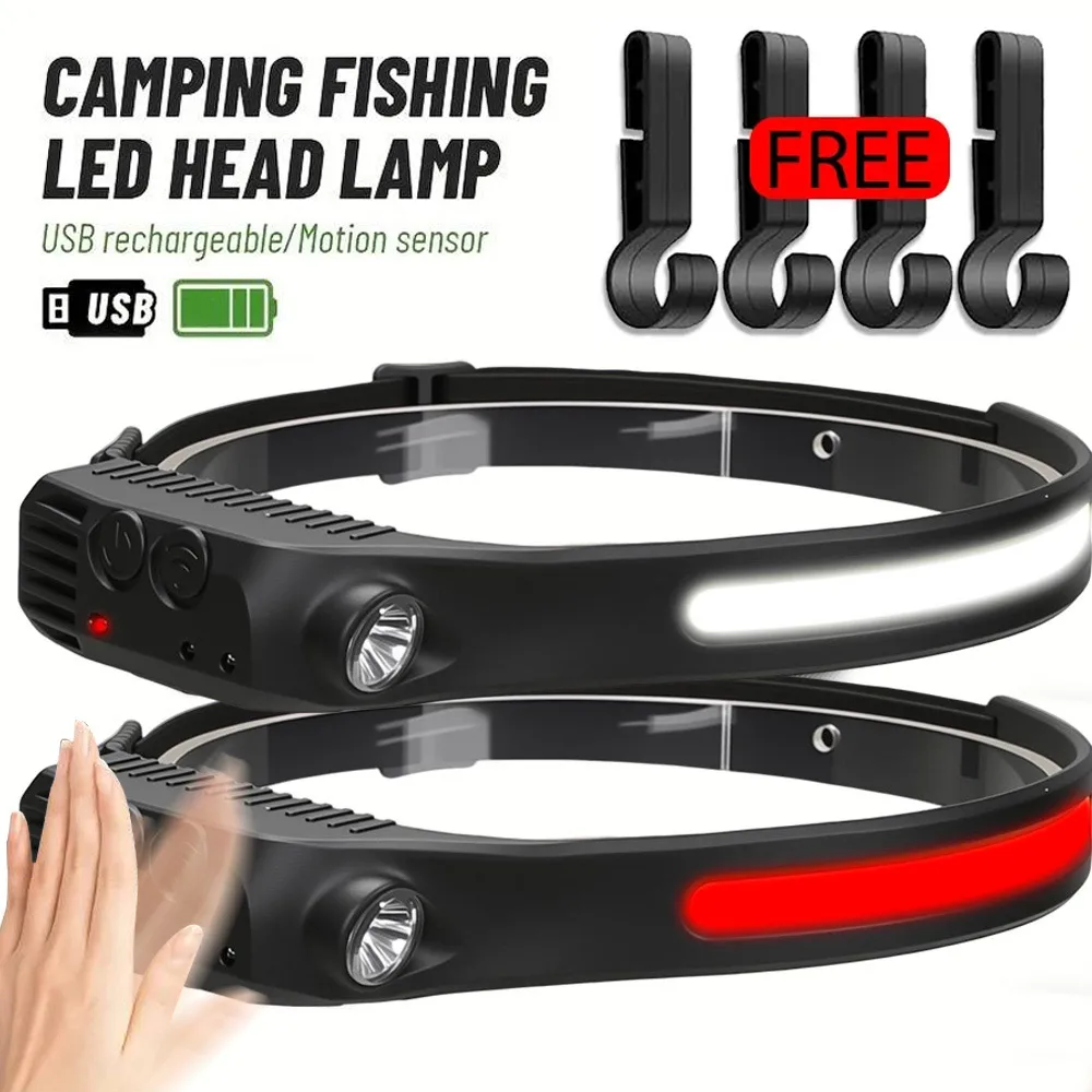 Linterna frontal LED Industrial con Sensor COB, linterna frontal recargable con batería integrada 18650, linterna para acampar y pescar al aire libre