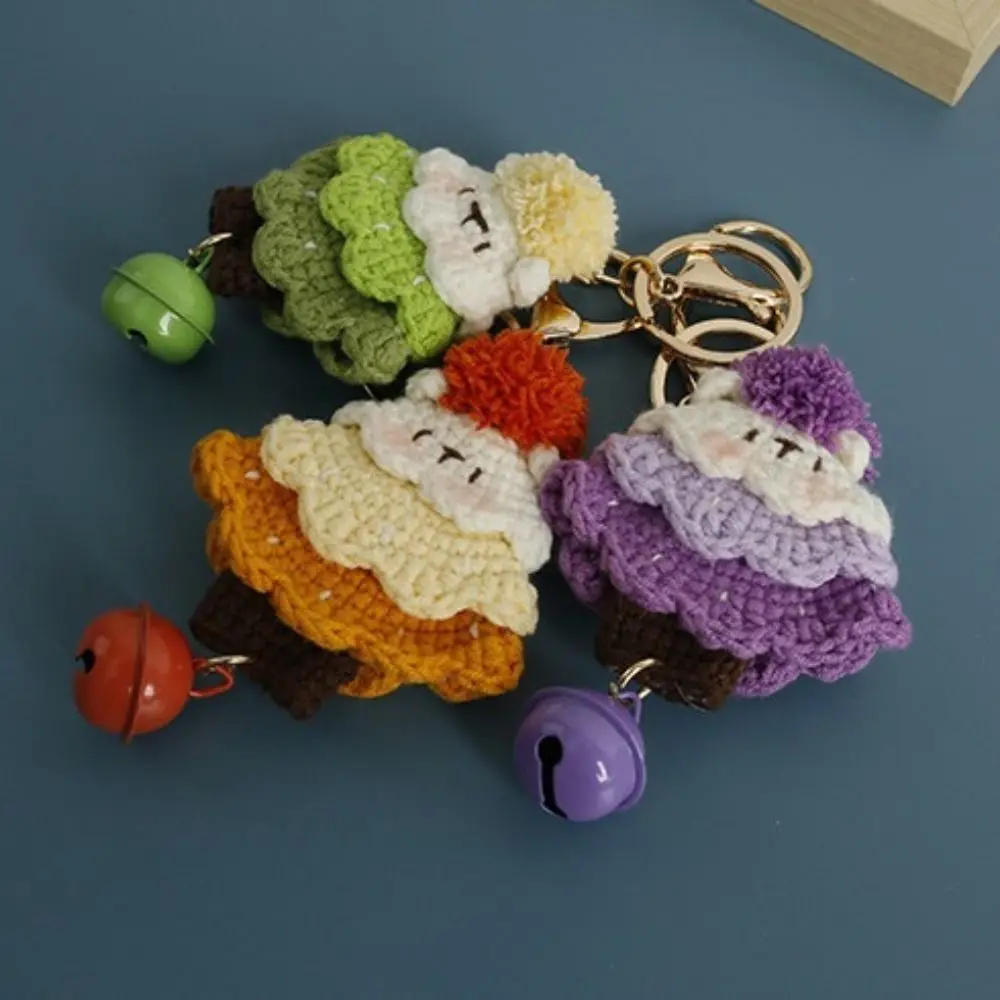 LLavero de bola de pelo de dibujos animados hecho a mano creativo, encantadores llaveros tejidos para coche, llaveros tejidos con campana de conejo rellenos