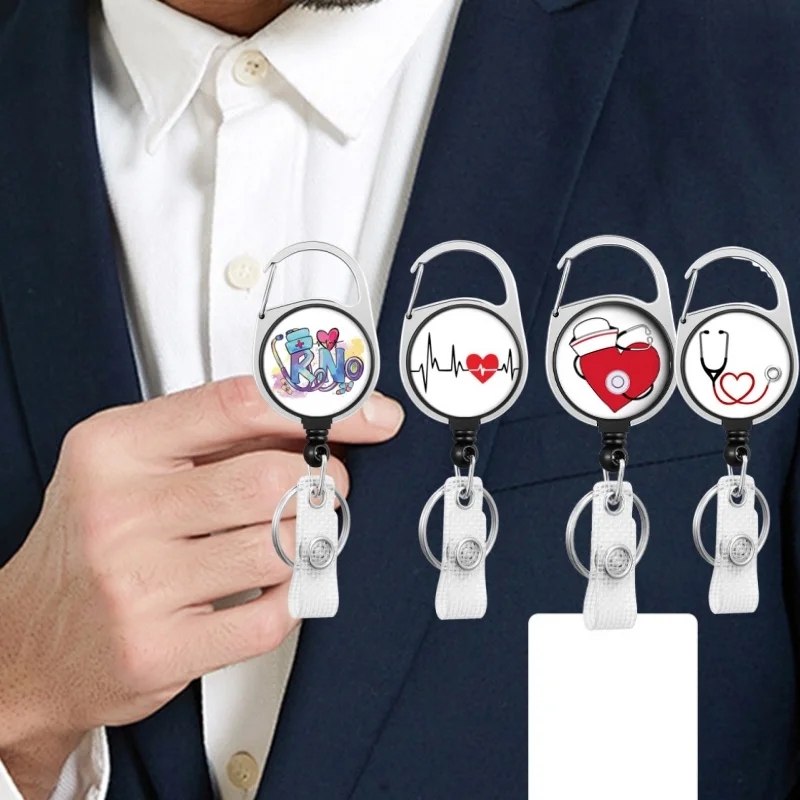 LLavero de estudiante con patrón de enfermera, fácil de tirar, Clip para insignia, hebilla de identificación de trabajo, carretes de insignia de nombre retráctiles para médico y Hospital, 1 ud.